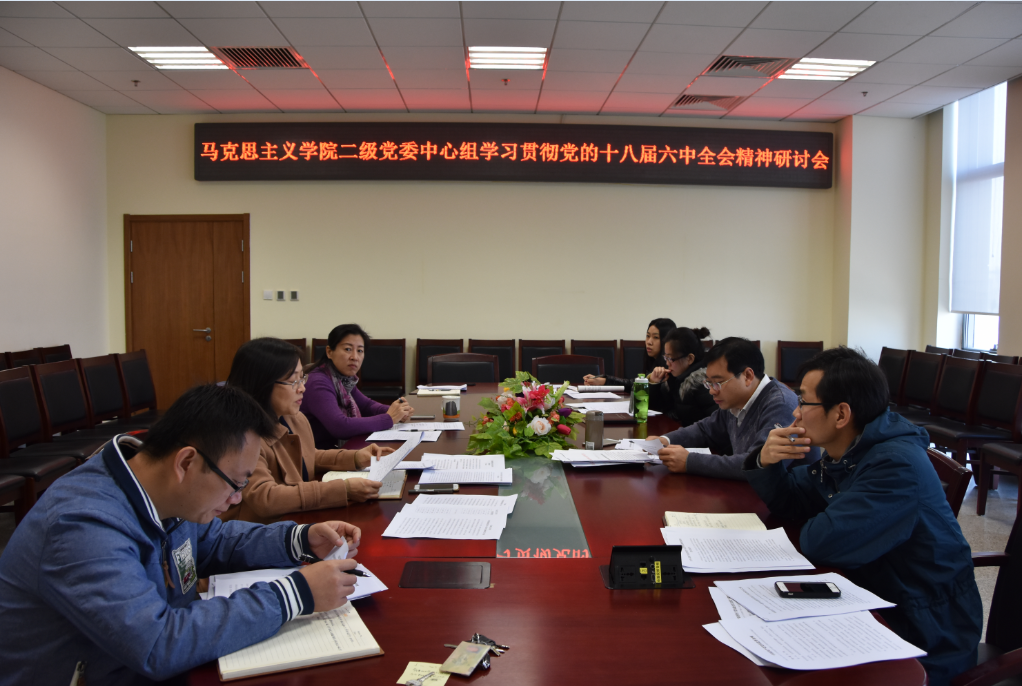 11月3日上午,马克思主义学院召开二级党委中心组会议,传达学习贯彻党的十八届六中全会精神,并结合学院实际,就学习、宣传、贯彻落实全会精神提出了具体要求,学院班子成员及各支部书记参加了会议。