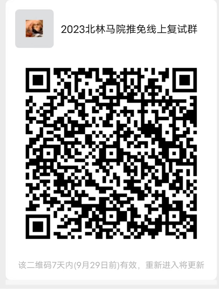 根据推免生申请材料的审核和学科拟接受推免数量的规定,经院系讨论研究,线上复试时间为9月23日,请已通过资格审核的考生关注复试微信群,并及时参加。